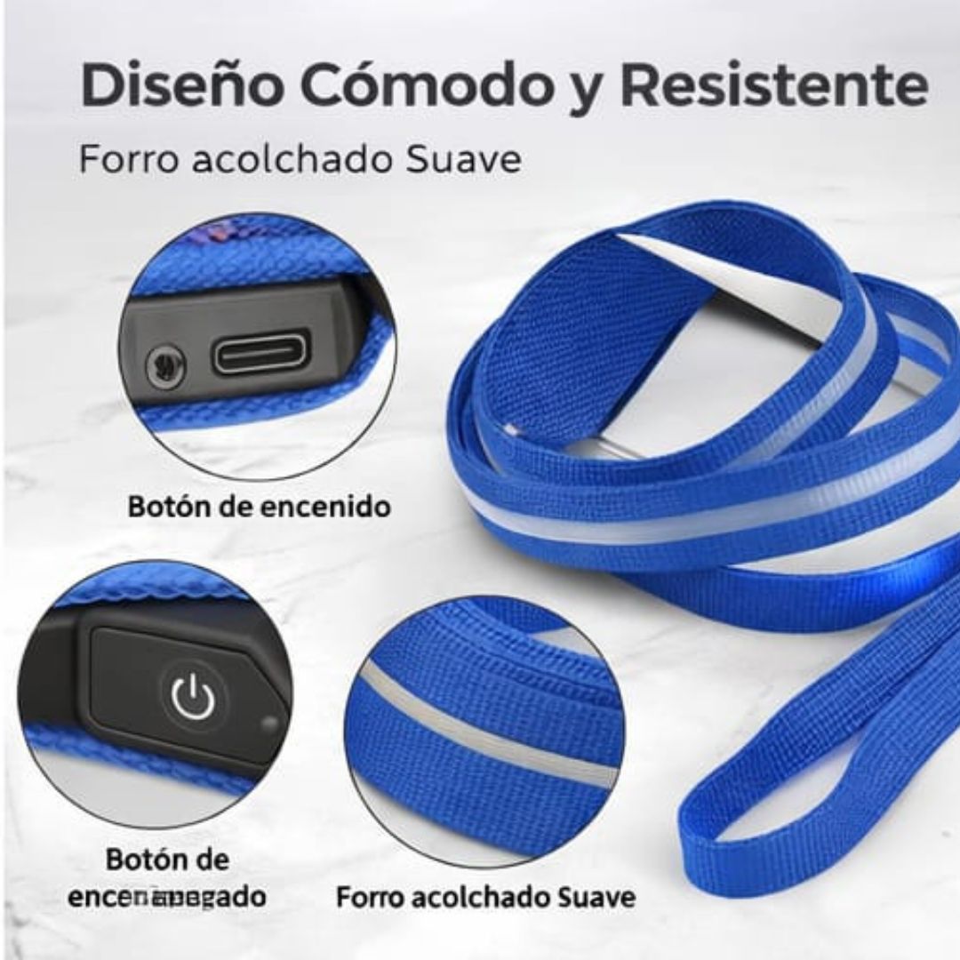 La Correa LED Noche Segura™ fue diseñada para dueños que no improvisan la seguridad de su perro. Cada detalle combina tecnología, resistencia y comodidad para transformar cualquier paseo nocturno en una experiencia segura y moderna.
